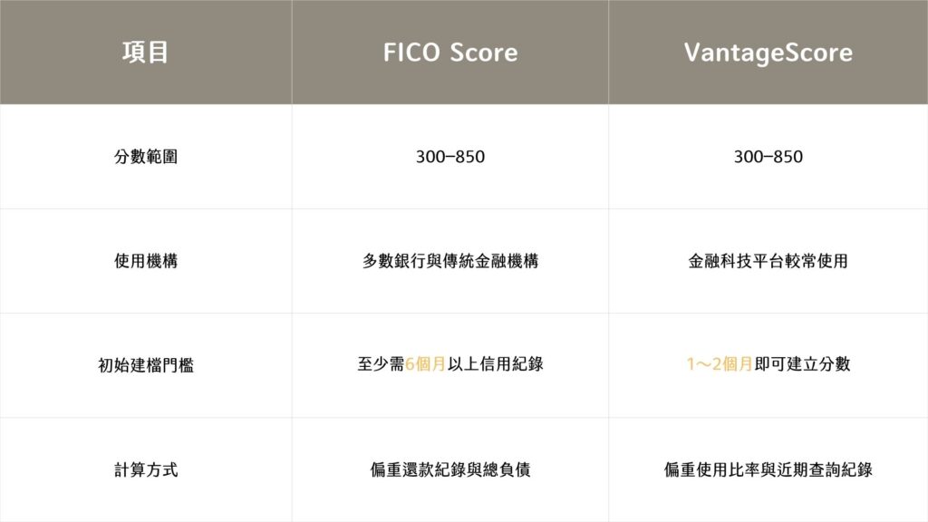 FICO vs VantageScore 差異簡表