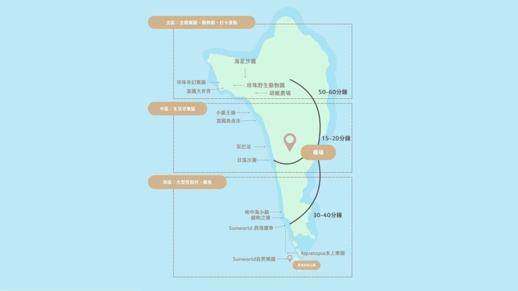 📌 提醒:富國島不像大城市有密集大眾運輸,如果你不會騎機車,建議選擇住宿地點在市區(中部)或飯店有接駁的地方,移動會更輕鬆。